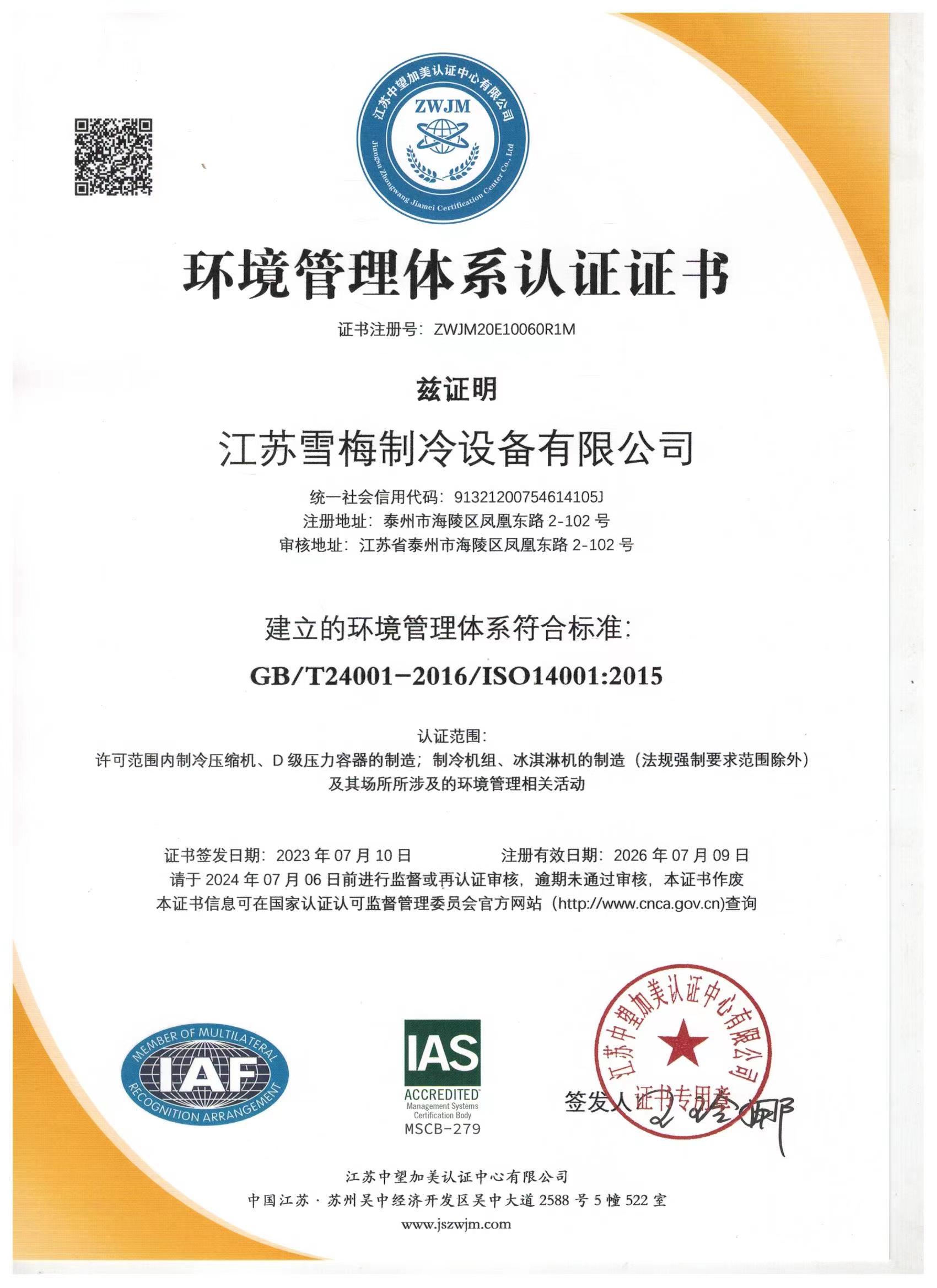 江蘇雪梅制冷設備有限公司是致力于“雪梅”品牌制冷設備研究開發和制造的高科技企業,是聯合國環保署和中國政府確定的生產環保節能型半封閉制冷壓縮機的示范企業。